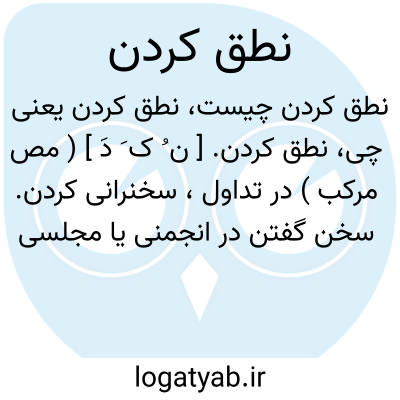 نطق کردن. [ ن ُ ک َ دَ ] ( مص مرکب ) در تداول، سخنرانی کردن. سخن گفتن در انجمنی یا مجلسی برای گروهی. || خطبه خواندن. ( از آنندراج از سفرنامه شاه ایران ).
