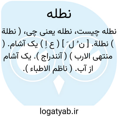 ( نطلة ) نطلة. [ ن ُ ل َ ] ( ع اِ ) یک آشام. ( منتهی الارب ) ( آنندراج ). یک آشام از آب. ( ناظم الاطباء ). جرعه. ( اقرب الموارد ) ( متن اللغة ). جرعه ای از خمر یا آب یا شیر و جز آن. ( از المنجد ). || آنچه از دهن مشک به دست برآرند. ( منتهی الارب ) ( آنندراج ) ( از اقرب الموارد ) ( از متن اللغة ).آنچه از دهان مشک با دست بردارند. ( ناظم الاطباء ).