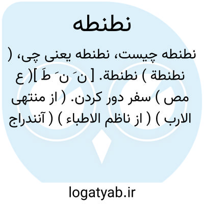 ( نطنطة ) نطنطة. [ ن َ ن َ طَ ]( ع مص ) سفر دور کردن. ( از منتهی الارب ) ( از ناظم الاطباء ) ( آنندراج ). نطنطالرجل؛ باعد سفره. ( متن اللغة ) ( اقرب الموارد ). || دور شدن زمین. ( آنندراج ) ( از منتهی الارب ) ( از ناظم الاطباء ). نطنطالارض؛ بعدت. ( متن اللغة ) ( اقرب الموارد ). || دراز کشیدن چیزی را. ( آنندراج ) ( از منتهی الارب ) ( از ناظم الاطباء ). نطنطالشی ٔ؛ مده. ( متن اللغة ) ( اقرب الموارد ).