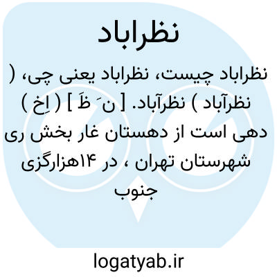 ( نظرآباد ) نظرآباد. [ ن َ ظَ ] ( اِخ ) دهی است از دهستان غار بخش ری شهرستان تهران، در 14هزارگزی جنوب ری، در جلگه معتدل هوائی واقع است و 119 نفر سکنه دارد. آبش از قنات، محصولش غلات و صیفی و چغندرقند، شغل اهالی زراعت است. ( از فرهنگ جغرافیایی ایران ج 1 ).