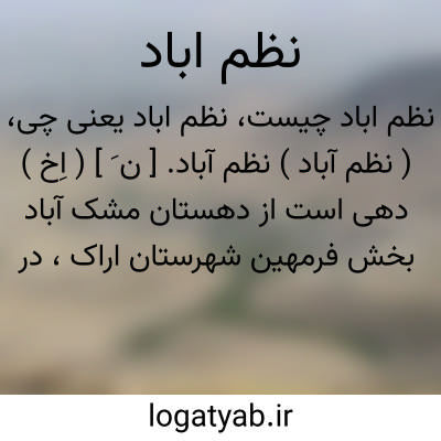 ( نظم آباد ) نظم آباد. [ ن َ ] ( اِخ ) دهی است از دهستان مشک آباد بخش فرمهین شهرستان اراک، در 48هزارگزی جنوب فرمهین، در ناحیتی کوهستانی و سردسیر واقع است و 391 تن سکنه دارد. آبش از قنات و چشمه است. محصولش غلات و انگور و شغل اهالی زراعت و قالی بافی است. ( از فرهنگ جغرافیایی ایران ج 2 ).