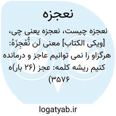 دانشنامه اسلامی [ویکی الکتاب] معنی لَن نُّعْجِزَهُ: هرگزاو را نمی توانیم عاجز و درمانده کنیمریشه کلمه: عجز (۲۶ بار)ه (۳۵۷۶ بار)