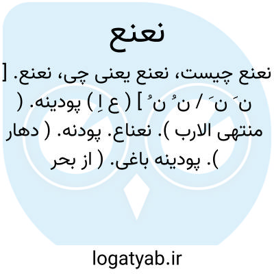 نعنع. [ ن َ ن َ / ن ُ ن ُ ] ( ع اِ ) پودینه. ( منتهی الارب ). نعناع. پودنه. ( دهار ). پودینه باغی. ( از بحر الجواهر ). رجوع به نعنا و نعناع شود:
