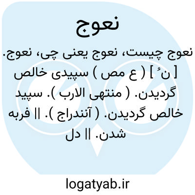 نعوج. [ ن ُ ] ( ع مص ) سپیدی خالص گردیدن. ( منتهی الارب ). سپید خالص گردیدن. ( آنندراج ). || فربه شدن. || دل گرفتن از گوشت میش. || به شتاب رفتن. ( منتهی الارب ). در تمام معانی رجوع به نَعج شود.