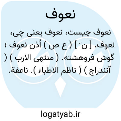 نعوف. [ ن َ ] ( ع ص ) اُذن نعوف؛ گوش فروهشته. ( منتهی الارب ) ( آنندراج ) ( ناظم الاطباء ). ناعفة. مسترخیة. ( از اقرب الموارد ).
