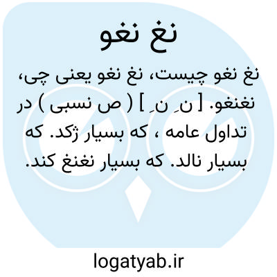 نغنغو. [ ن ِ ن ِ ] ( ص نسبی ) در تداول عامه، که بسیار ژکد. که بسیار نالد. که بسیار نغنغ کند. که بسیار شکایت کند. ( یادداشت مؤلف ).