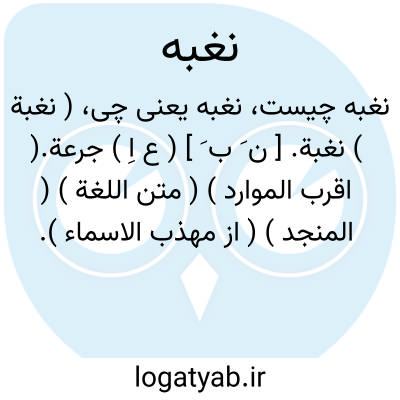 ( نغبة ) نغبة. [ ن َ ب َ ] ( ع اِ ) جرعة.( اقرب الموارد ) ( متن اللغة ) ( المنجد ) ( از مهذب الاسماء ). یک آشام آب و جز آن. ( منتهی الارب ). یک شربت آب.( از مهذب الاسماء ). نُغبَة. ( اقرب الموارد ) ( متن اللغة ) ج، نُغَب. || پس خورده. نُغبَة. ج، نُغَب. || یکبار گرسنه شدن. بی نانخورش گردیدن قوم. ( از منتهی الارب ).