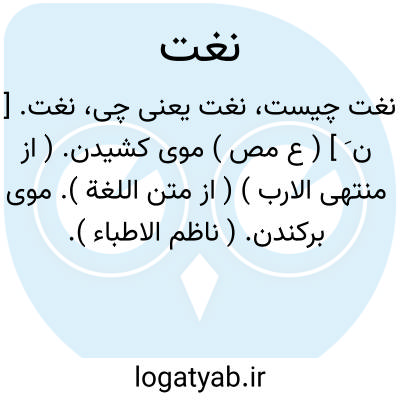 لغت نامه دهخدا نغت. [ ن َ ] ( ع مص ) موی کشیدن. ( از منتهی الارب ) ( از متن اللغة ). موی برکندن. ( ناظم الاطباء ).