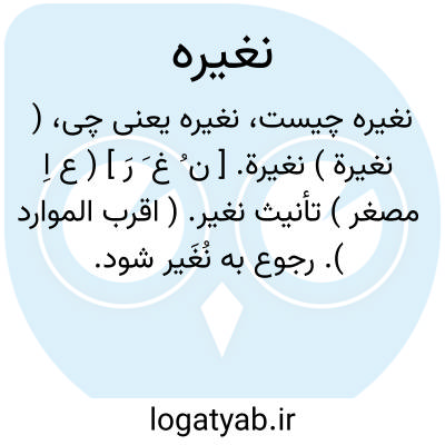 لغت نامه دهخدا ( نغیرة ) نغیرة. [ ن ُ غ َ رَ ] ( ع اِ مصغر ) تأنیث نغیر. ( اقرب الموارد ). رجوع به نُغَیر شود.