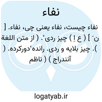 نفاء. [ ن َ ] ( ع اِ ) چیز ردی ٔ. ( از متن اللغة ). چیز بلایه و ردی. رانده ٔدورکرده. ( آنندراج ) ( ناظم الاطباء ). آنچه دورافکنی آن را بعلت ردائت آن. ( از اقرب الموارد ). نفی. نُفایة. نَفایة. نفاة. نَفوة. نِفوة. نفاوة. ( متن اللغة ). || باقی مانده چیزی. ( از متن اللغة ) ( از اقرب الموارد ). بقیه. ( ناظم الاطباء ) ( آنندراج ). || پست و فرومایه از قوم. ( از متن اللغة ) ( از اقرب الموارد ). رانده دورکرده. ( آنندراج ) ( ناظم الاطباء ). نفاة. نفایة. نفی. نفوة. نفاوة. ( متن اللغة ).