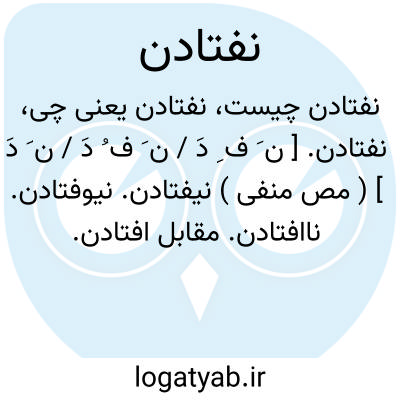لغت نامه دهخدا نفتادن. [ ن َ ف ِ دَ / ن َ ف ُ دَ / ن َ دَ ] ( مص منفی ) نیفتادن. نیوفتادن. ناافتادن. مقابل افتادن. رجوع به افتادن شود: هین کمالی دست آور تا تو هم از کمال دیگران نفتی به غم.مولوی.