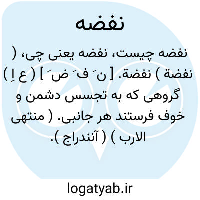 ( نفضة ) نفضة. [ ن َ ف َ ض َ ] ( ع اِ ) گروهی که به تجسس دشمن و خوف فرستند هر جانبی. ( منتهی الارب ) ( آنندراج ). جماعتی که ایشان را به تجسس به اطراف فرستند تا ببینند در آنجا دشمنی یا خوفی هست یا نه. ( از تاج العروس ) ( از متن اللغة ) ( از اقرب الموارد ). گروهی که راه از جاسوس و جز او پاک دارند. ( از مهذب الاسماء ). نفیضة. ( مهذب الاسماء ) ( متن اللغة ). ج، نفائض.