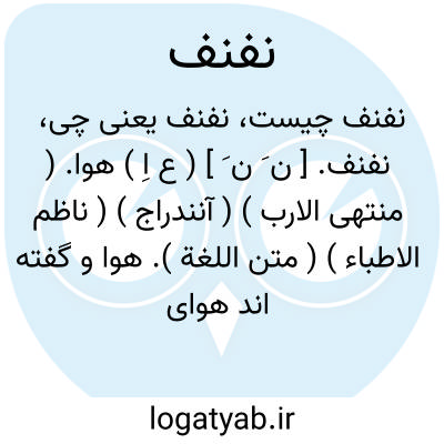 نفنف. [ ن َ ن َ ] ( ع اِ ) هوا. ( منتهی الارب ) ( آنندراج ) ( ناظم الاطباء ) ( متن اللغة ). هوا و گفته اند هوای میان دو چیز. ( از اقرب الموارد ). هوای میان دو کوه. ( منتهی الارب ) ( آنندراج ). فضای آزاد میان دو کوه. ( ناظم الاطباء ). مهواة بین دو کوه. ( اقرب الموارد از اصمعی ) ( متن اللغة ). میان دو کوه. ( مهذب الاسماء ). گشادگی میان دو کوه. ( یادداشت مؤلف ). || کرانه کوه شبیه دیوار مبنی هموار. ( منتهی الارب ) ( آنندراج ). کرانه کوه که گویا دیواری است برابر و هموار. ( ناظم الاطباء ) ( اقرب الموارد ) ( از متن اللغة ). || روی کوه بلند رفته از آن و فرودآمده. ( منتهی الارب ) ( آنندراج ). آنچه از روی کوه که بالا رفته و فرود آمده باشد. ( ناظم الاطباء ). || از سر دیوار تا پائین و بن آن. ( منتهی الارب ) ( آنندراج ) ( از ناظم الاطباء ) ( از اقرب الموارد ) ( از متن اللغة ). || از لب چاه تا تک آن. ( منتهی الارب ) ( آنندراج ) ( ناظم الاطباء ) ( از اقرب الموارد ). || میان آسمان و زمین. ( منتهی الارب ) ( آنندراج ) ( مهذب الاسماء ) ( از اقرب الموارد ). فضای میان آسمان و زمین. ( ناظم الاطباء ). مابین سماء و ارض. ( متن اللغة ). || دشت. ( منتهی الارب ) ( آنندراج ) ( ناظم الاطباء ). بیابان. ( ناظم الاطباء ). مفازة. ( اقرب الموارد ) ( متن اللغة ). ج، نفانف.