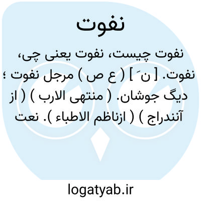 نفوت. [ ن َ ] ( ع ص ) مرجل نفوت؛ دیگ جوشان. ( منتهی الارب ) ( از آنندراج ) ( ازناظم الاطباء ). نعت است از نفت. رجوع به نَفت شود.