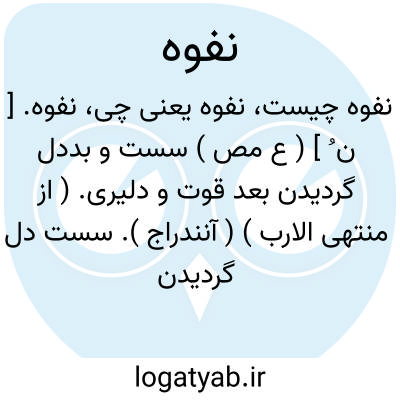 نفوه. [ ن ُ ] ( ع مص ) سست و بددل گردیدن بعد قوت و دلیری. ( از منتهی الارب ) ( آنندراج ). سست دل گردیدن کسی پس از دلیری. ( ناظم الاطباء ). سست دل و ترسو شدن. ( از اقرب الموارد ). || ذلیل و رام گردیدن سپس سختگی و درشتی. ( منتهی الارب ) ( آنندراج ). ذلیل شدن شتر بعد از صعوبت آن. ( از اقرب الموارد ).
