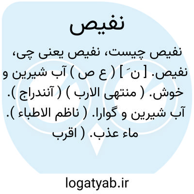 نفیص. [ ن َ ] ( ع ص ) آب شیرین و خوش. ( منتهی الارب ) ( آنندراج ). آب شیرین و گوارا. ( ناظم الاطباء ). ماء عذب. ( اقرب الموارد ) ( متن اللغة ).