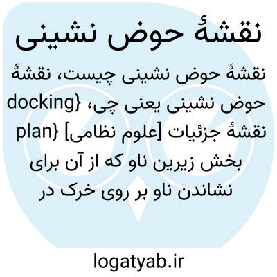 {docking plan} [علوم نظامی] نقشۀ جزئیات بخش زیرین ناو که از آن برای نشاندن ناو بر روی خرک در حوضچۀ خشک و دسترسی به حفاظ های سونار (sonar domes ) و ورودی های بدنۀ ناو استفاده می شود
