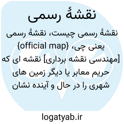 {official map} [مهندسی نقشه برداری] نقشه ای که حریم معابر یا دیگر زمین های شهری را در حال و آینده نشان می دهد و مراجع دولتی و قضایی آن را به رسمیت می شناسند