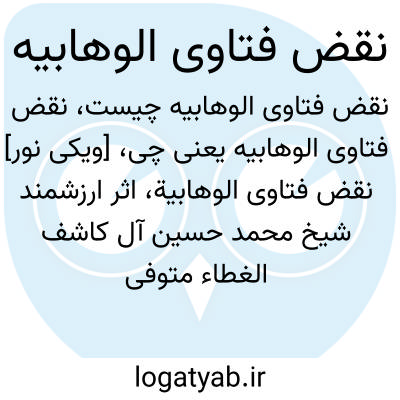 [ویکی نور] نقض فتاوی الوهابیة، اثر ارزشمند شیخ محمد حسین آل کاشف الغطاء متوفی 1373ق، از نوادگان علامه شیخ جعفر کاشف الغطاء است که در ردّ تعدادی از شبهات وهابیت به زبان عربی به رشته تحریر در آمده است.
