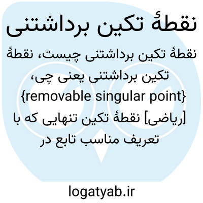 {removable singular point} [ریاضی] نقطۀ تکین تنهایی که با تعریف مناسب تابع در آن نقطه، تابع تحلیلی شود متـ. تکینۀ برداشتنی