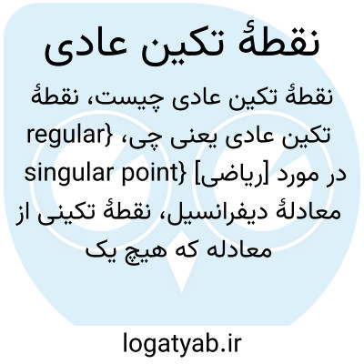 {regular singular point} [ریاضی] در مورد معادلۀ دیفرانسیل، نقطۀ تکینی از معادله که هیچ یک از جواب ها در آنجا تکینۀ اساسی نداشته باشد متـ. تکینۀ عادی