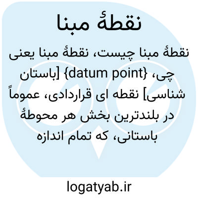 {datum point} [باستان شناسی] نقطه ای قراردادی، عموماً در بلندترین بخش هر محوطۀ باستانی، که تمام اندازه گیری ها، به ویژه اندازه گیری ارتفاع، نسبت به آن سنجیده می شود