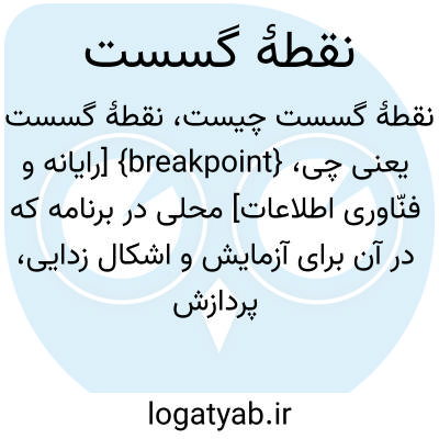 {breakpoint} [رایانه و فنّاوری اطلاعات] محلی در برنامه که در آن برای آزمایش و اشکال زدایی، پردازش موقتاً متوقف می شود
