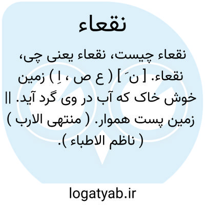 نقعاء. [ ن َ ] ( ع ص، اِ ) زمین خوش خاک که آب در وی گرد آید. || زمین پست هموار. ( منتهی الارب ) ( ناظم الاطباء ). || غبار. ( از اقرب الموارد ) ( از تاج العروس ). || صوت. ( المنجد ) ( اقرب الموارد ) ( از تاج العروس ). ج، نقاع.