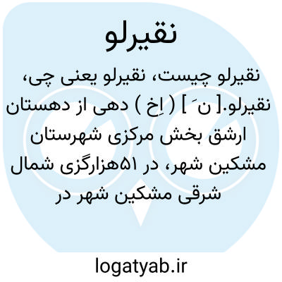 نقیرلو.[ ن َ ] ( اِخ ) دهی از دهستان ارشق بخش مرکزی شهرستان مشکین شهر، در 51هزارگزی شمال شرقی مشکین شهر در منطقه ای کوهستانی و معتدل هوا واقع است و 167 تن سکنه دارد. آبش از چشمه، محصولش غلات و حبوبات، شغل اهالی زراعت و گله داری است. ( از فرهنگ جغرافیایی ایران ج 4 ).
