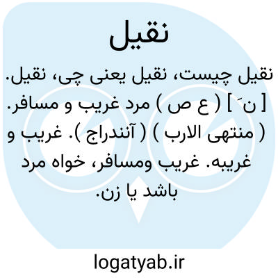نقیل. [ ن َ ] ( ع ص ) مرد غریب و مسافر. ( منتهی الارب ) ( آنندراج ). غریب و غریبه. غریب ومسافر، خواه مرد باشد یا زن. ( ناظم الاطباء ). || ( اِ ) توجبه که از زمین باران رسیده آید. ( منتهی الارب ) ( آنندراج ) ( ناظم الاطباء ). سیل که از زمین باران رسیده به اراضی دیگر جاری شود. ( از اقرب الموارد )( از متن اللغة ). || راه هرچه باشد. ( منتهی الارب ) ( آنندراج ). طریق. ( اقرب الموارد ) ( متن اللغة ).هر راهی. ( ناظم الاطباء ). || رفتاری است اسب را که در آن دست و پای را زودزود بردارد. یقال: انه ذونقیل. یا آن رفتاری است میان دویدن و پویه رفتن. ( منتهی الارب ) ( آنندراج ). قسمی از سیر و رفتن است وآن مداومت در رفتن است. ( از اقرب الموارد ) ( از متن اللغة ). فرس ذونقیل؛ سریع نقل القوائم. ( از اقرب الموارد ). || ج ِ نَقیلة. رجوع به نَقیلة شود.