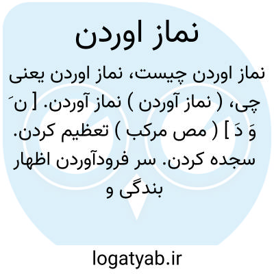 ( نماز آوردن ) نماز آوردن. [ ن َ وَ دَ ] ( مص مرکب ) تعظیم کردن. سجده کردن. سر فرودآوردن اظهار بندگی و اطاعت را: