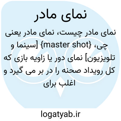 {master shot} [سینما و تلویزیون] نمای دور یا زاویه بازی که کل رویداد صحنه را در بر می گیرد و اغلب برای ایجاد پوشش تصویری از چند نمای نزدیک یا متوسط نیز استفاده می شود