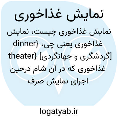 {dinner theater} [گردشگری و جهانگردی] غذاخوری که در آن شام درحین اجرای نمایش صرف می شود و بازیگران غالباً تماشاگران را به دنبال کردن نمایش ترغیب می کنند متـ. نمایش رستوران