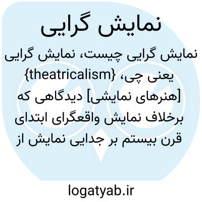 {theatricalism} [هنرهای نمایشی] دیدگاهی که برخلاف نمایش واقعگرای ابتدای قرن بیستم بر جدایی نمایش از زندگی واقعی تأکید می ورزد