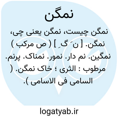 نمگن. [ ن َ گ ِ ] ( ص مرکب ) نمگین. نم دار. نمور. نمناک. پرنم. مرطوب: الثری؛ خاک نمگن. ( السامی فی الاسامی ).