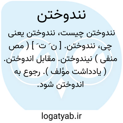لغت نامه دهخدا نندوختن. [ ن َ ت َ ] ( مص منفی ) نیندوختن. مقابل اندوختن. ( یادداشت مؤلف ). رجوع به اندوختن شود.