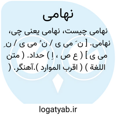 نهامی. [ ن َ می ی / ن ُ می ی / ن ِ می ی ] ( ع ص، اِ ) حداد. ( متن اللغة ) ( اقرب الموارد ).آهنگر. ( منتهی الارب ) ( مهذب الاسماء ). نهام. رجوع به نهام شود. || نجار. ( اقرب الموارد ) ( متن اللغة ). درودگر. ( منتهی الارب ). نهام. رجوع به نهام شود.