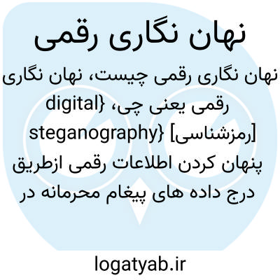 {digital steganography} [رمزشناسی] پنهان کردن اطلاعات رقمی ازطریق درج داده های پیغام محرمانه در داخل داده های پیغام عادی