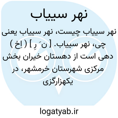 نهر سییاب. [ ن َ رِ ] ( اِخ ) دهی است از دهستان خیران بخش مرکزی شهرستان خرمشهر، در یکهزارگزی مشرق خرمشهر، در دشت گرمسیری واقع و دارای 1000 تن سکنه است. آبش از کارون، محصولش خرما و شغل اهالی زراعت و کارگری شرکت نفت است. آبادی نهردره نیز جزء این ده است. ( از فرهنگ جغرافیائی ایران ج 6 ).