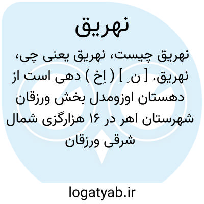نهریق. [ ن ِ ] ( اِخ ) دهی است از دهستان اوزومدل بخش ورزقان شهرستان اهر در 16 هزارگزی شمال شرقی ورزقان و 10هزارگزی جاده تبریز به اهر. در منطقه کوهستانی معتدل هوایی واقع و دارای 564 تن سکنه است. آبش از چشمه، محصولش غلات و حبوبات و شغل اهالی زراعت و گله داری و جاجیم بافی است. ( از فرهنگ جغرافیائی ایران ج 4 ).