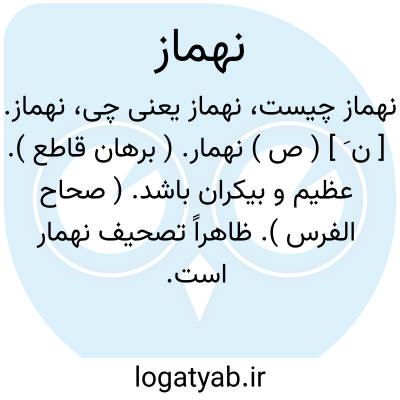 نهماز. [ ن َ ] ( ص ) نهمار. ( برهان قاطع ). عظیم و بیکران باشد. ( صحاح الفرس ). ظاهراً تصحیف نهمار است. ( یادداشت مؤلف ). رجوع به نهمار شود.