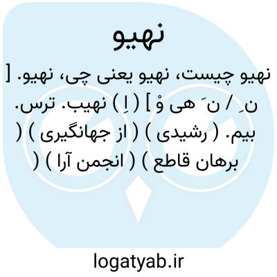 نهیو. [ ن ِ / ن َ هی وْ ] ( اِ ) نهیب. ترس. بیم. ( رشیدی ) ( از جهانگیری ) ( برهان قاطع ) ( انجمن آرا ) ( آنندراج ). رجوع به نهیب شود: