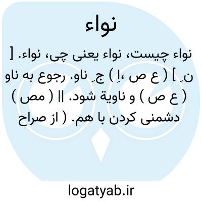 نواء. [ ن ِ ] ( ع ص،اِ ) ج ِ ناو. رجوع به ناو ( ع ص ) و ناویة شود. || ( مص ) دشمنی کردن با هم. ( از صراح اللغة ) ( از اقرب الموارد ). || مفاخره و معارضه کردن با یکدیگر. ( از اقرب الموارد ). رجوع به مناواة شود.