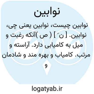 نوابین. [ ن َ ] ( ص )آنکه رغبت و میل به کامیابی دارد. آراسته و مرتب. کامیاب و بهره مند و شادمان و خرسند. گل و شکوفه ( ؟ ). ( ناظم الاطباء ). رجوع به فرهنگ شعوری ج 2 ص 391 شود.