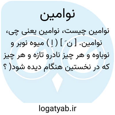 نوامین. [ ن َ ] ( اِ ) میوه نوبر و نوباوه و هر چیز نادرو تازه و هر چیز که در نخستین هنگام دیده شود( ؟ ). ( ناظم الاطباء ). رجوع به فرهنگ شعوری ج 2 ص 391 شود.
