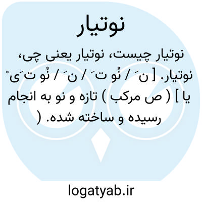 نوتیار. [ ن َ / نُو ت َ / ن َ / نُو ت َی ْ یا ] ( ص مرکب ) تازه و نو به انجام رسیده و ساخته شده. ( یادداشت مؤلف ). نیز رجوع به تیار شود: داشن؛ جامه نو که پوشیده نشده باشد و خانه نوتیار که سکونت کرده نشده باشد. ( منتهی الارب ).