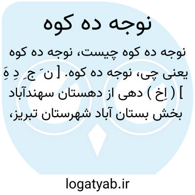 نوجه ده کوه. [ ن َ ج ِ دِ هَِ ] ( اِخ ) دهی از دهستان سهندآباد بخش بستان آباد شهرستان تبریز، در 24 هزارگزی مغرب بستان آباد و 13 هزارگزی جاده تبریز به لیقوان، در منطقه ای کوهستانی و سردسیر واقع است و 583 تن سکنه دارد. آبش از چشمه، محصولش غلات و حبوبات، شغل مردمش زراعت و گله داری است. ( از فرهنگ جغرافیایی ایران ج 4 ).