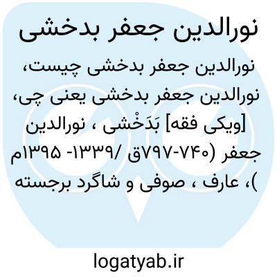 [ویکی فقه] بَدَخْشی، نورالدین جعفر (۷۴۰-۷۹۷ق /۱۳۳۹- ۱۳۹۵م )، عارف، صوفی و شاگرد برجسته میرسید علی همدانی (د ۷۸۶ق /۱۳۸۴م ) بود.