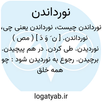 نورداندن. [ ن َ وَ دَ ] ( مص ) نوردیدن. طی کردن. در هم پیچیدن. برچیدن. رجوع به نوردیدن شود: چو همه خلق بمیرند و جبرئیل و میکائیل و عزرائیل بمیرند و زمین را پست گرداند و آسمان را بنورداند. ( تفسیر قرآن کمبریج ج 2 ص 81 ).