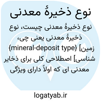 {mineral-deposit type} [زمین شناسی] اصطلاحی کلی برای ذخایر معدنی ای که اولاً دارای ویژگی های زمین شناختی مشترک باشند و ثانیاً حاوی کانی معدنی یا ترکیبی از کانی های معدنی خاصی باشند